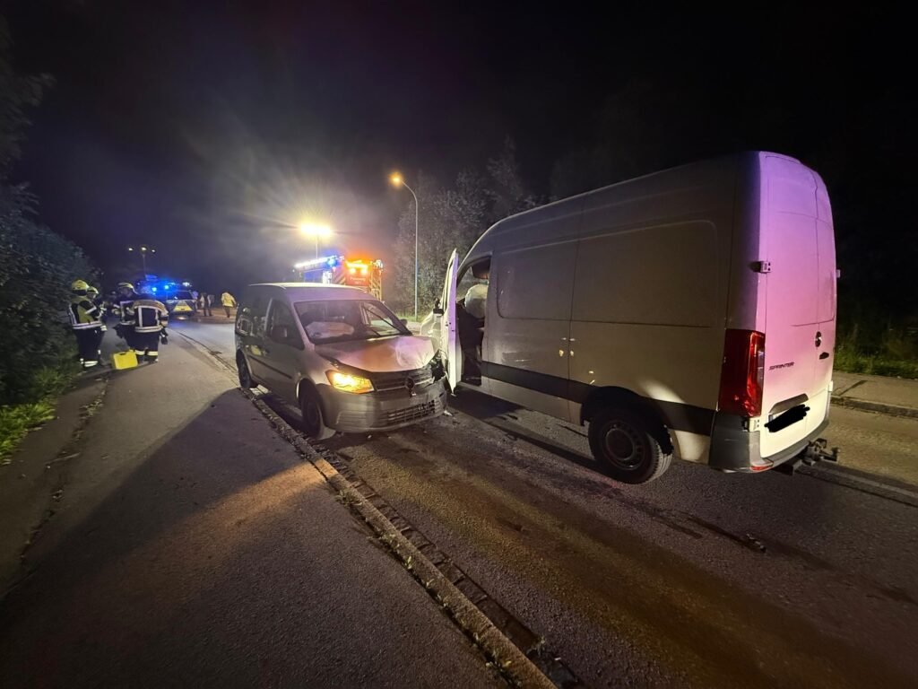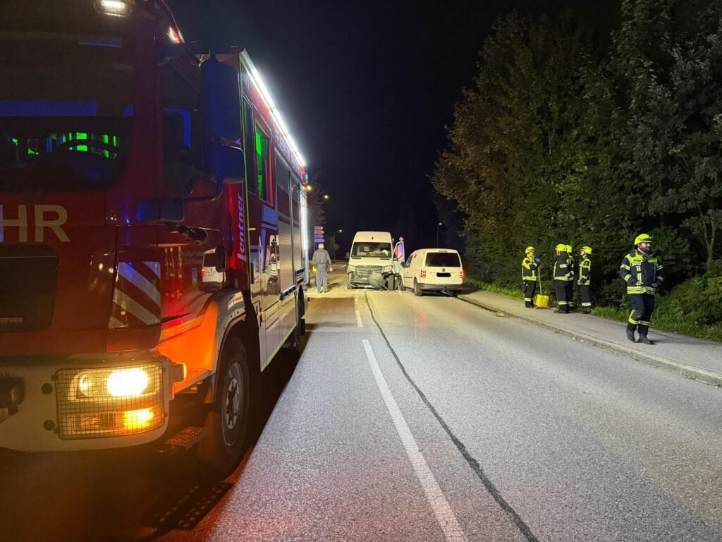 Verkehrsunfall mit 2 PKW, die frontal ineinander gefahren sind. Wir richteten eine Totalsperre ein und reinigten die Straße.