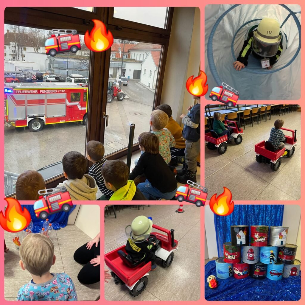 - Lustige Feuerwehr-Spiele: Wir flitzen um die Wette, löschen „Phantasie-Feuer“ und zeigen, wie stark wir im Team sind.